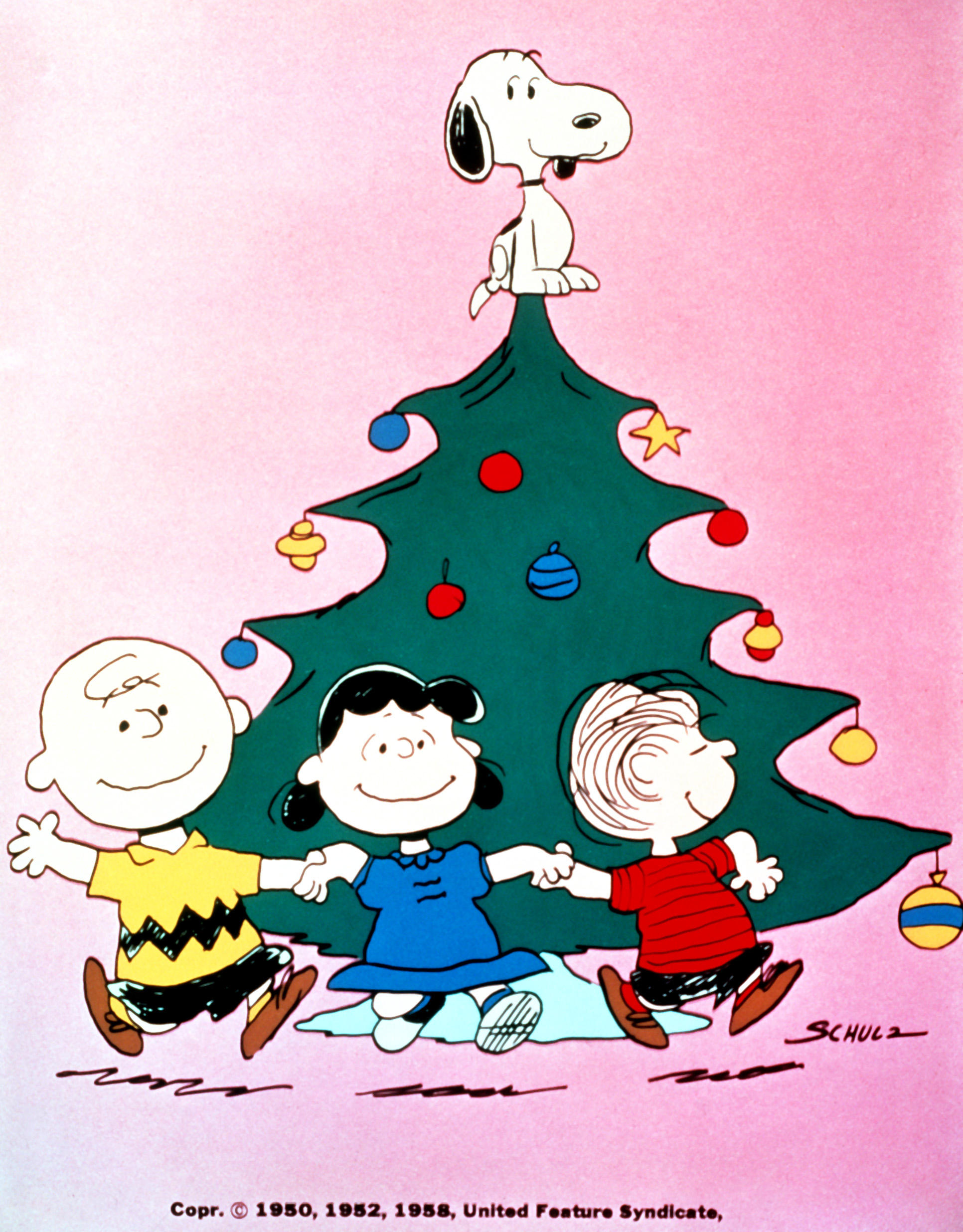 Transforming a simple little tree into a thing of beauty with a lot of love and attention–and some canine star power–are “Peanuts,” Snoopy (top) and charlie Brown, Lucy and Linus, in A CHARLIE BROWN CHRISTMAS, Peabody and Emmy Award-winning animated specal to be rebroadcast this holiday season on the CBS Television Network.