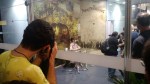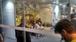 Uma coisa legal que estava acontecendo no estande da Warner, eles estavam maquiando as pessoas como Coringa e Arlequina e também tinha uma exposição dos acessórios do Batman, do filme Batman vs Super Homem.