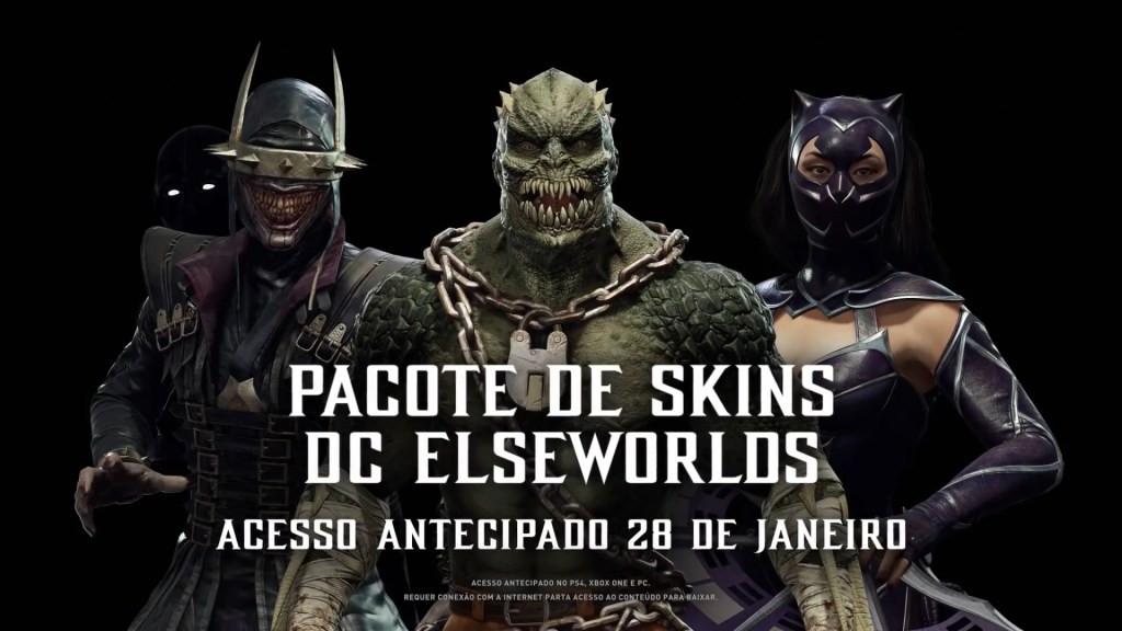E como vem acontecendo, a cada novo lutador que chega no MK11, vem junto novas skins para outros lutadores. A inspiração desta vez vem do Multiverso DC com skins inspiradas no Batman que Ri, Killer Croc e Mulher Gato para Noob Saibot, Baraka e Kitana, respectivamente. Uma skin para Geras inspirada no Darkseid também vem junto.