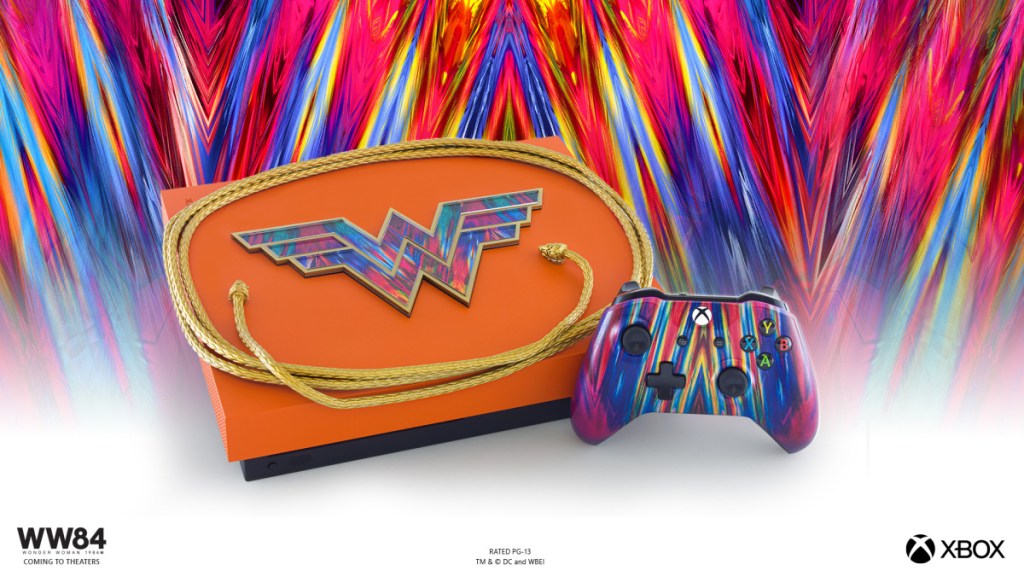 A Microsoft fez uma parceria com a Warner Bros. para produzir três Xbox One X temáticos do filme Mulher-Maravilha 1984. Todos os consoles são somente para exposição não sendo possível usa-los para jogar.