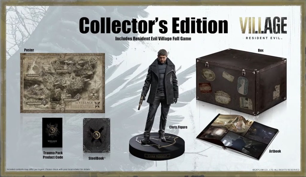 Já a Collector’s Edition terá o conteúdo da Deluxe acrescido de steelbook, uma estatueta do Chris Redfield e pôster com o mapa do jogo. Tudo acondicionado dentro de uma caixa especial.