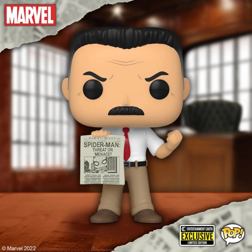 A Funko vai lançar um bonequinho da série Pop! do J. Jonah Jameson “clássico” segurando um exemplar do Clarim Diário com a manchete “Homem-Aranha: Perigo ou Ameaça”.