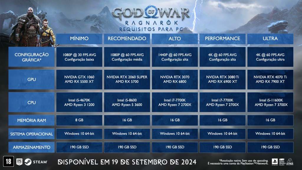Santa Monica Studio divulgou os requisitos mínimos e recomendados do God of War Ragnarök para seu porte pa PC.