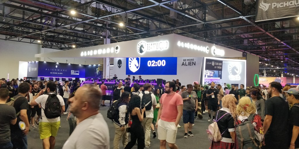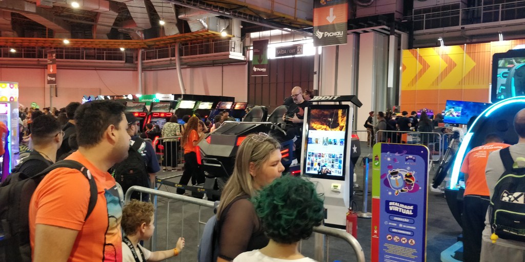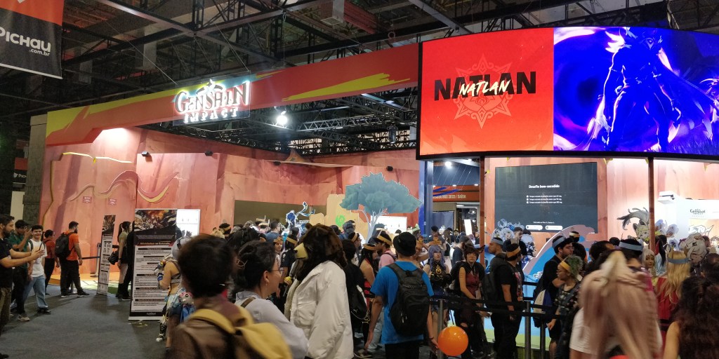 Mas os estandes mais concorridos sem dívida foram o de HoYoverse com Genshin Impact por razões óbivias e da loja Pichau, que era um dos mais animados e sempre estava lotado com estações diversas para jogar, simuladores e um palco onde faziam atividades para sortear brindes para a galera presente.