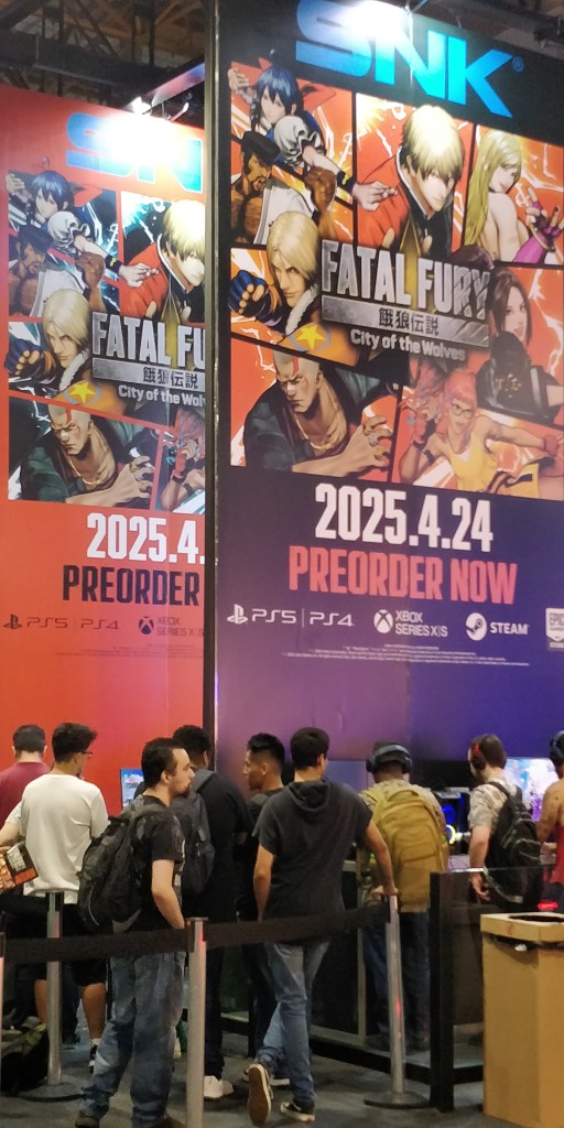 Haviam também estandes menores, como da CD Projekt Red, Devolver Digital, SNK, Arc System Works. No estande da SNK, consegui jogar a demonstração Fatal Fury: City of the Wolves. Também consegui jogar uma versão “pré alfa” do Dune: Awakening no estande Funcom.
